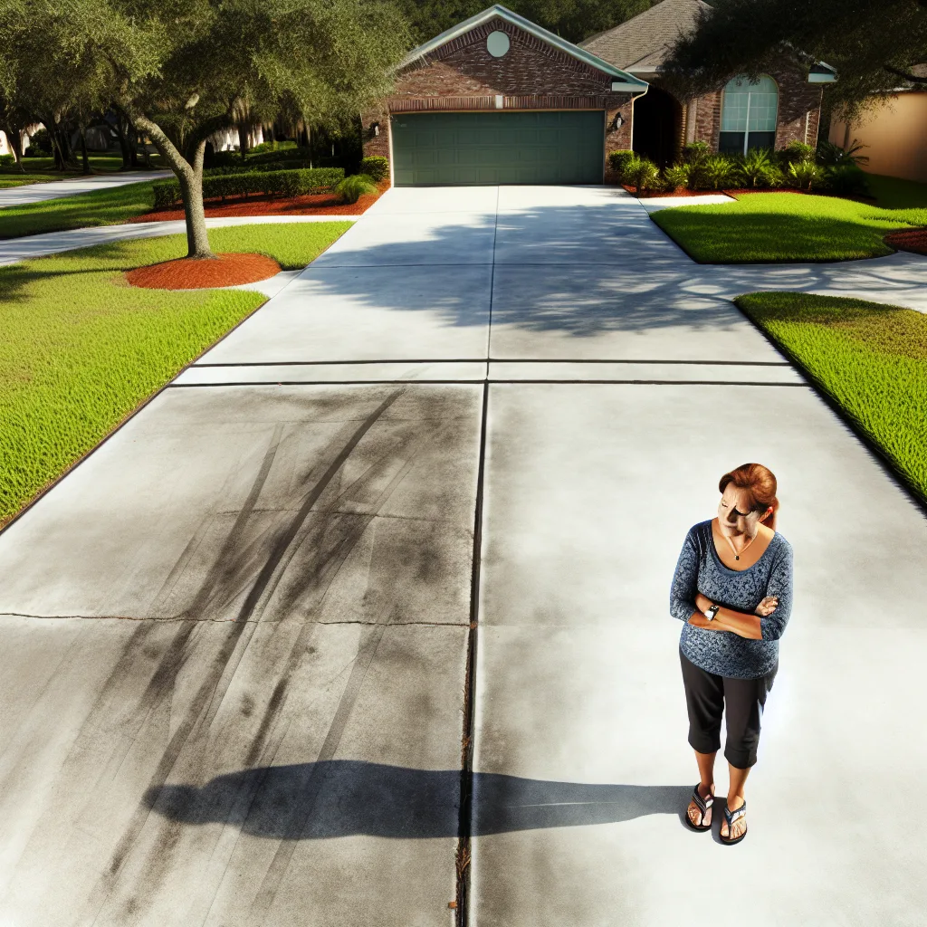 The single biggest variable is surface condition. Period. A driveway that gets washed once a year is a different animal than one that hasn't been touched in four or five years. Central Florida's humidity means algae, mold, and mildew build up fast, especially on concrete sitting under oak trees or near a retention pond. We worked on a driveway in Longwood last summer that looked gray from the street. Turned out it was mostly green underneath. That job took twice as long as a clean driveway the same size. We see this constantly.